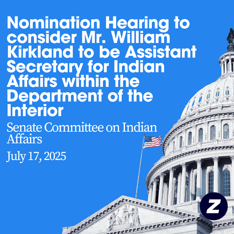 The Senate Committee on Indian Affairs holds a nomination hearing for William “Billy” Kirkland on July 17, 2025. Listen to the hearing.