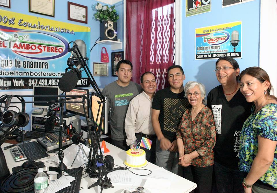 Staff of the Kichwa Hatari Internet radio show celebrate the first broadcast. Photo from Facebook
