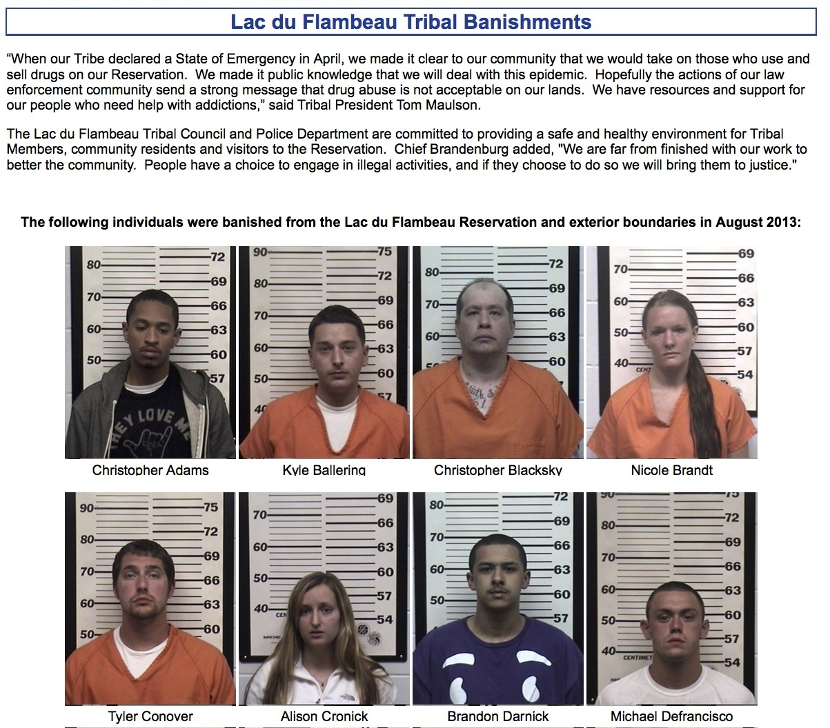 Lac du Flambeau Tribe is banishing people as anti-drug strategy (Northland's News Center 9/5) Related Stories:
