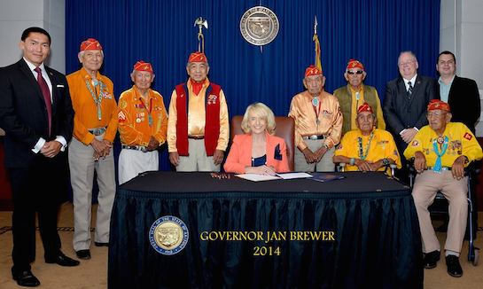 Navajo Code Talkers attend signing ceremony for Senate Bill 1099. July 16, 2014. Photo from Arizona Gov. Jan Brewer (R)