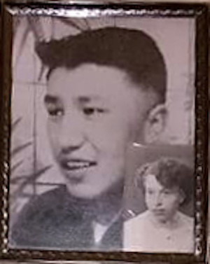 A family photo of Patrick Henry White Buffalo. A smaller photo of Agatha White Buffalo can be seen in the lower right.