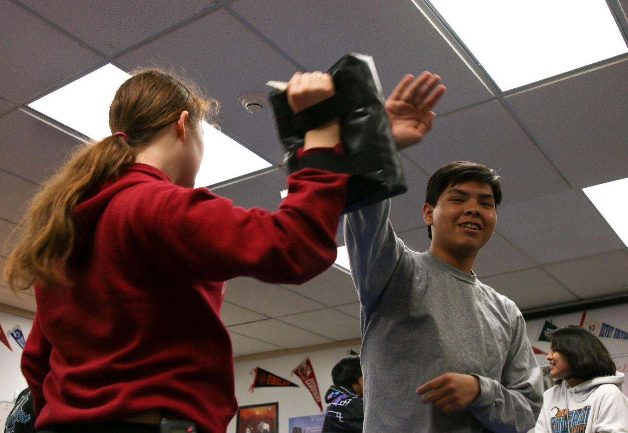 “Native women are more likely to be a target of attacks and will need to defend themselves more,” Hunts-in-Winter said as she taught members of the Native American Club at Westwood High School.