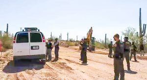 Members of the O’odham Anti Border Collective & Defend O’odham Jewed took direct action and halted construction of the border wall threatening O’odham lands near Ajo, Arizona.