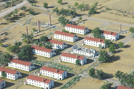 The mostly still-standing prisoner-of-war holding barracks at the U.S. Army’s former Black Hills Ordnance Depot near Edgemont. Constructed during World War II, the two-story barracks primarily housed Italian POWs who were utilized as inexpensive sources of labor. The depot brought Native American and non-Native American families together to work and to live in the adjacent civilian community of Igloo. PHOTO COURTESY LANDINGADAY.WORDPRESS.COM