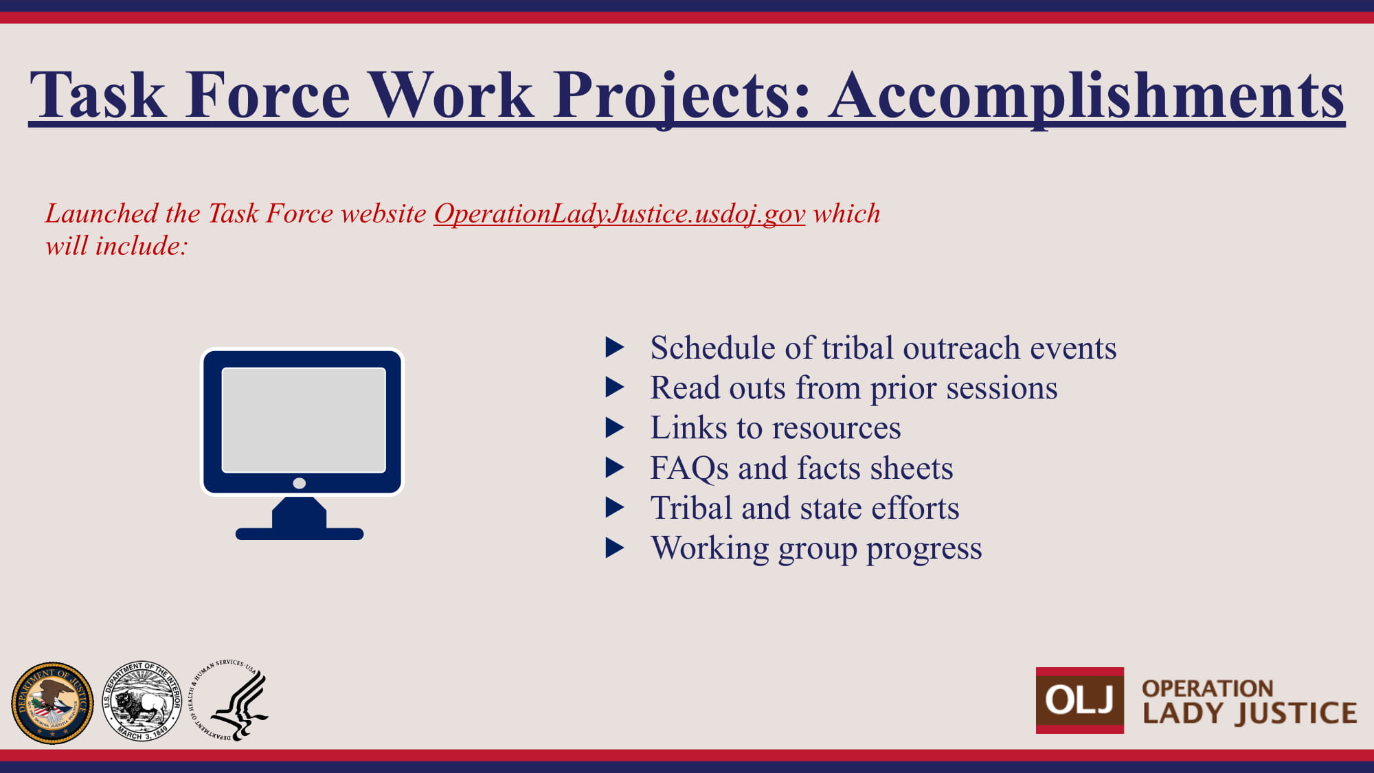 Ahead of the session, the Department of Justice released a presentation, giving an overview of “Operation Lady Justice” and its efforts so far. It is provided below for reference.